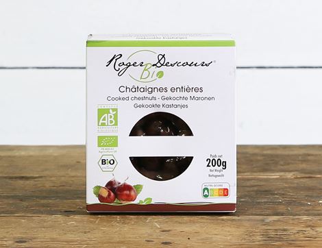 Certified Organic Cooked chestnuts for use in both savoury and sweet dishes. Can be used to replace flour in desserts as an unusual, gluten-free alternative - particularly wonderful when combined with chocolate! Can also be added whole tostews and casseroles, or served as a puree as an alternative to mashed potato.