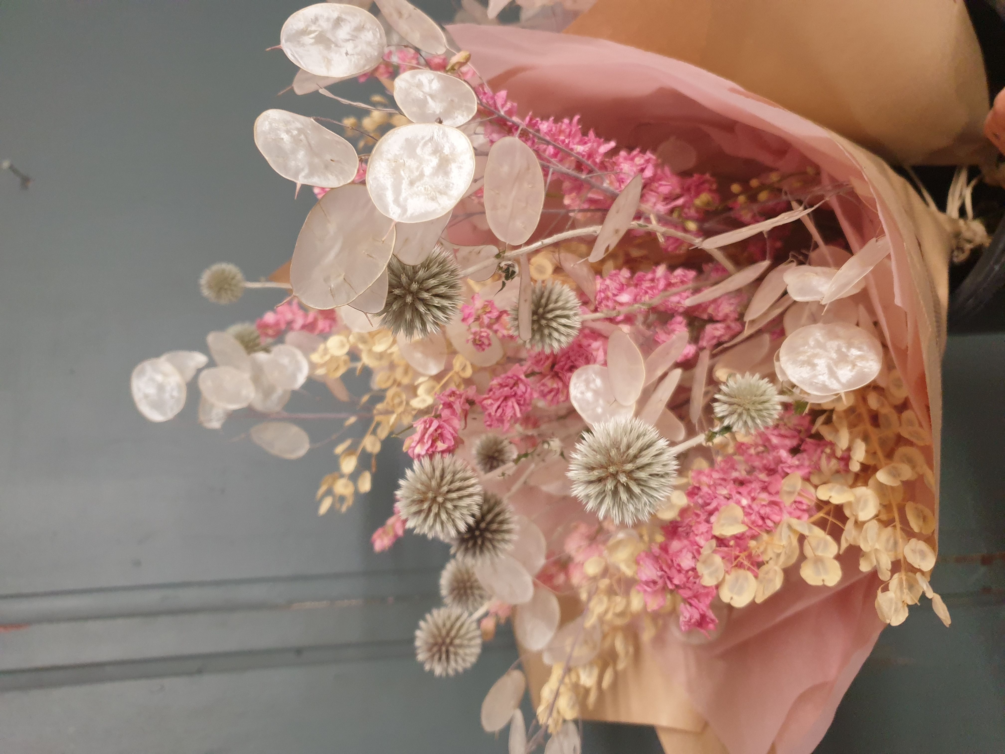 A bouquet of our own dried flowers. A sustainable alternative to imported flowers during the winter months untill we have fresh again in March. Will last upto 2 years if kept dry and away from direct sunlight. Around 20 stems