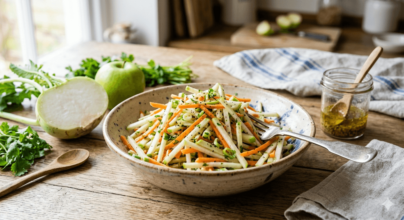 Kohlrabi is a criminally underrated vegetable. It’s essentially the "apple of the cabbage world" - crisp, slightly sweet, and holding a peppery kick like a radish or broccoli stem. Here is a recipe for a vibrant, zesty Kohlrabi and Apple Slaw that works perfectly as a side dish or a topping for tacos and burgers.